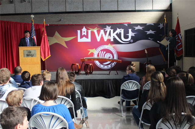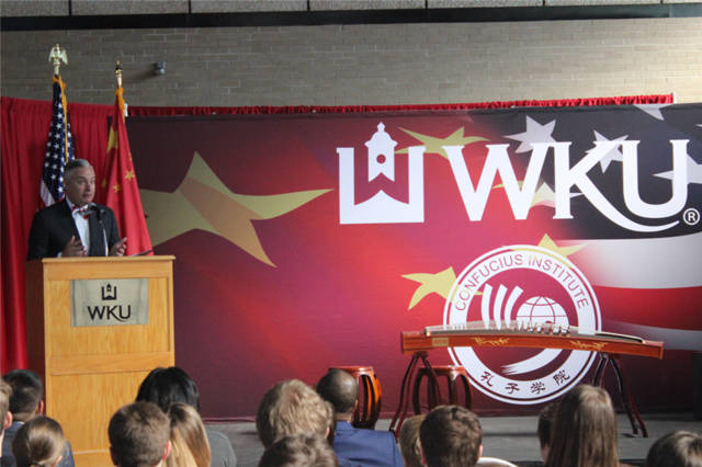 西肯孔院外方经理马泰瑞(Terrill Martin)在开幕式讲话中感谢西肯塔基大学董事长及华电各位领导的莅临,感谢老师们、同学们的到来。