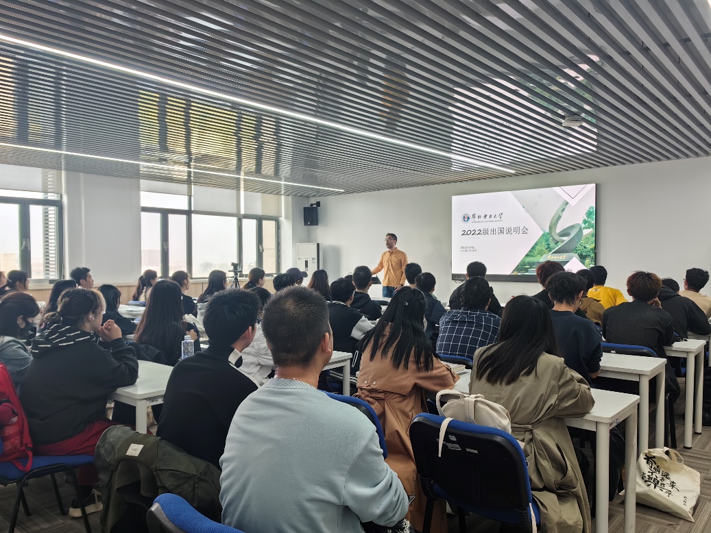 10月31日,太阳成集团tyc234cc举办2022级出国说明会。赵子健副经理,中外合作办学项目事务部负责人王娟,以及2022级员工参加会议。