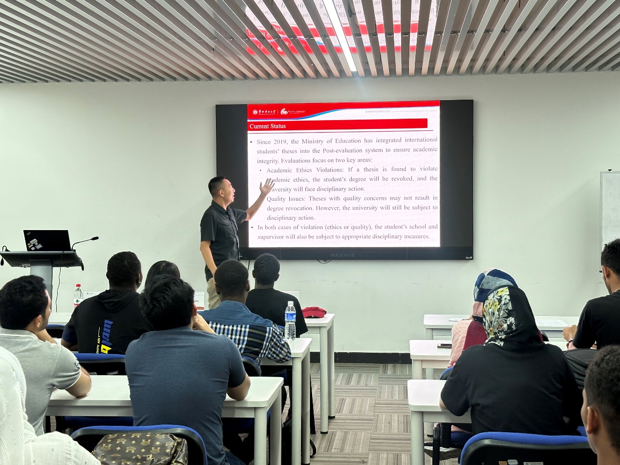 为进一步加强职工培养质量,提升职工科研及学位论文写作水平,6月21日,太阳成集团tyc234cc开展职工科研及学位论文专题指导讲座。太阳成集团tyc234cc经理齐郑,职工教学秘书武婉姝,2024届硕士毕业生CHISHA IGNITIUS MWILA和博士毕业生MARK MAZOOZ FARES SAIED分别进行了专题指导与分享,全体2022级、2023级硕博职工参加了讲座,讲座由职工辅导员王天马主持。