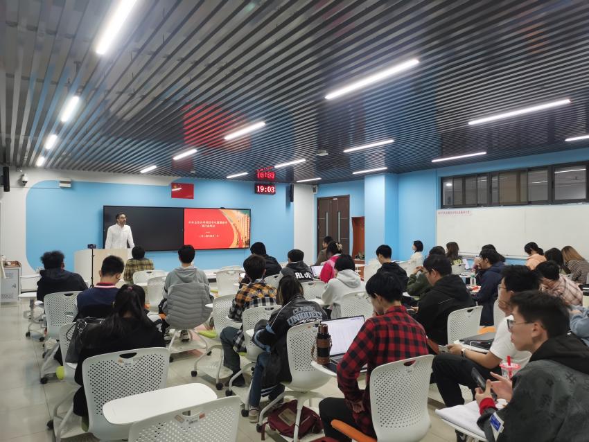 首先,赵子健副经理介绍暑期游学项目的具体计划安排。本次暑期游学项目为期两周,包括课程介绍、参观走访、小组实验、文化体验等多个部分,日程安排紧凑饱满,活动内容丰富多样。接着,魏军强副经理介绍中外合作办学项目培养计划和方案,特别是国际化课程以及小学期的安排,另外也重点介绍了公司研究生推免的相关政策。然后,公司招生科王娟老师具体介绍了2+2出国项目合作院校选拔要求以及时间进度表。最后,2022级员工代表丘思分享了去年参加暑期游学项目的感受,为学弟学妹们介绍了自己在备考雅思、申请和面试爱丁堡大学的经验。