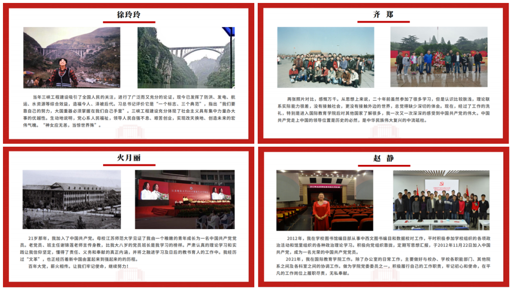 活动中,支部党员结合自身的成长经历和工作体会,真情回忆了自己入党时的难忘故事和动人情景,讲述了接受党的教育、接受党组织的考验,成为一名共产党员的光荣经历;讲述了坚定初心使命,不断提高党性修养的思想历程,分享了自己发挥党员先锋模范作用,实现自身价值的体会。通过新老照片的对比,大家深刻感悟到了在党的领导下,党和国家事业所取得的历史性成就。