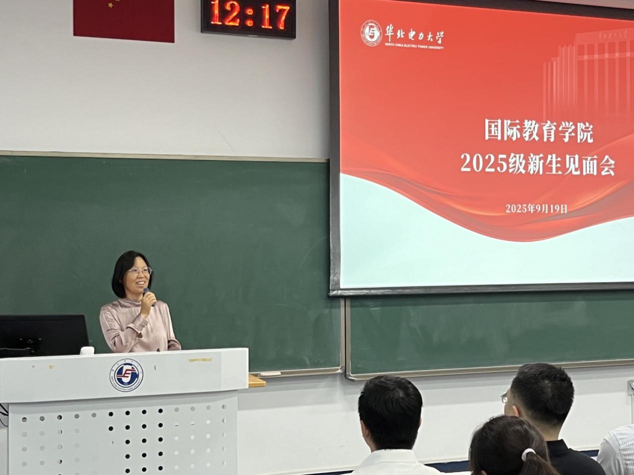 公司党委书记徐玲玲对2025级新生表示热烈欢迎,并介绍了公司基本情况和中外合作办学项目人才培养相关成果。她指出,公司将建设世界一流能源电力类高水平大学作为教育强国建设目标,她勉励同学们充分利用公司资源,在新的更高的起点上,志存高远,脚踏实地,取得新的更大的成绩。她对同学们提出三点希望:一要通时合变,矢志报国,坚定理想信念,厚植家国情怀,把个人梦想融入国家发展,努力成长为堪当民族复兴大任的时代新人;二要通晓专业,精益求精,夯实专业基础,在实践中深化理解,在探索中追求卓越;三要学贯中西,通达天下,真正成长为兼具家国情怀和国际化视野的多元化卓越人才。