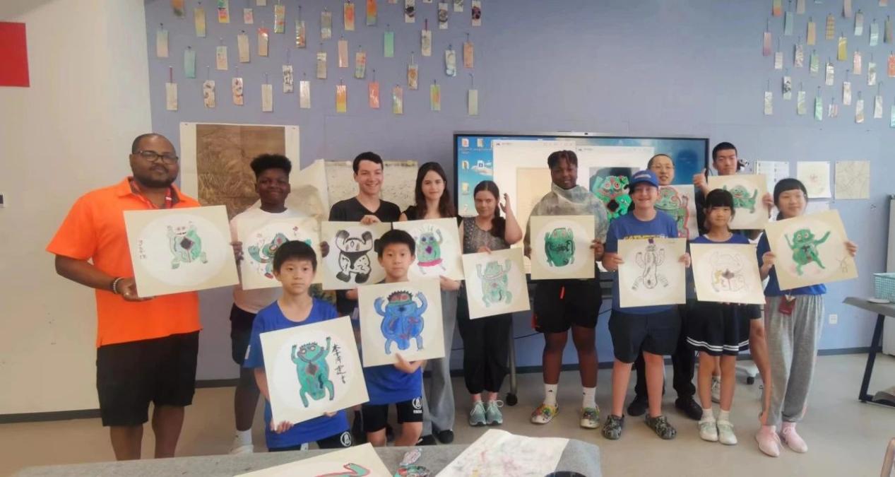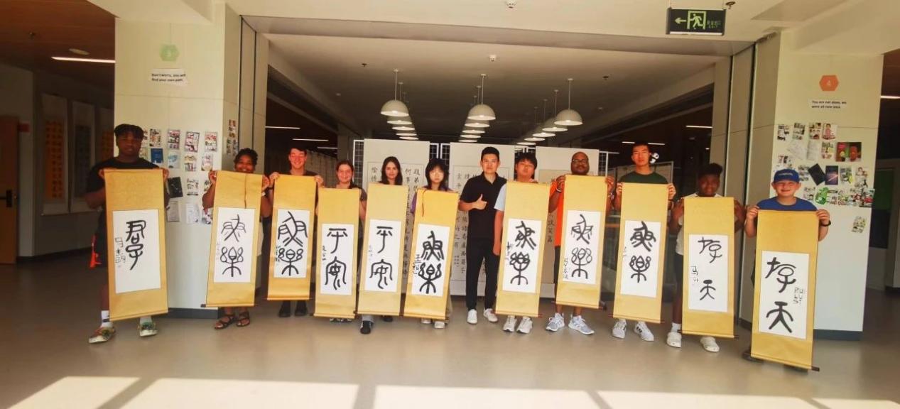 中文课上,从汉字演化、构字法到声调和成语,从古诗诵读再到旅游中的日常对话。同学们的中文水平迅速提升,对中文的理解也更加深入。丰富多彩的文化课上。同学们了解了古筝的由来、构造、演奏时的坐姿与手势,熟练地弹奏出电影《笑傲江湖》的主题曲《沧海一声笑》。在水墨画的课堂上,他们发挥创造力与对中式审美的理解,挥毫泼墨绘制出独属自己的艺术作品。在体育课上,来自美国的同学们真正体验了他们神往已久的中国功夫。在书法课上,他们在卷轴上笔走龙蛇,用篆书写下“平安”“鱼乐”等有美好祈愿的汉语词汇。