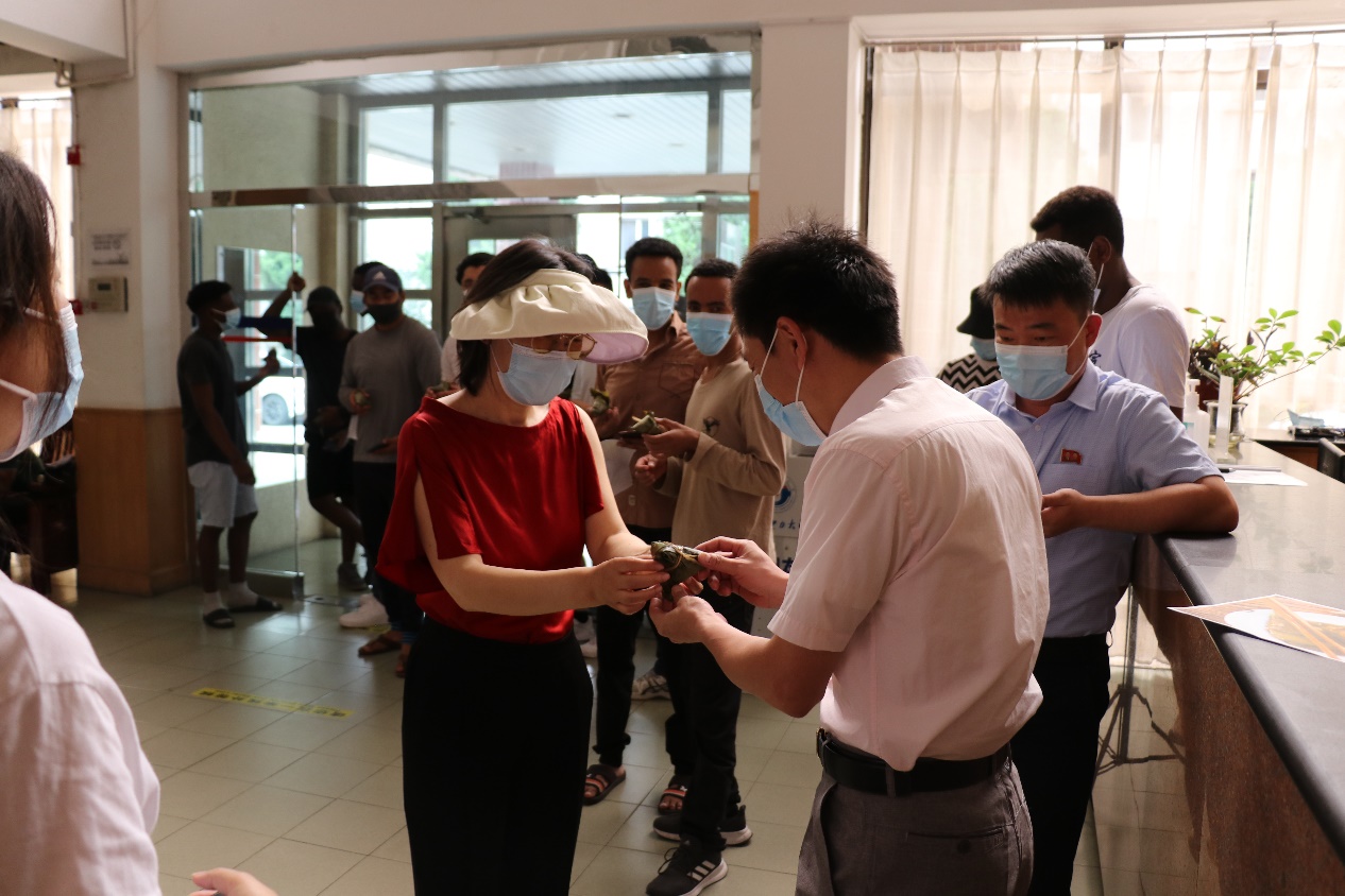 徐玲玲代表公司向中外员工表达了节日的问候,并给员工们亲手送上了粽子。徐玲玲指出,端午节是中国重要的传统节日,是中华传统文化的重要载体,蕴藏着深厚的中华民族风俗和文化内涵。希望同学们更加深入地了解中国文化,成为中国文化的传播者和中国故事的讲述者,同时感受到公司大家庭的温暖,一解思乡之愁。