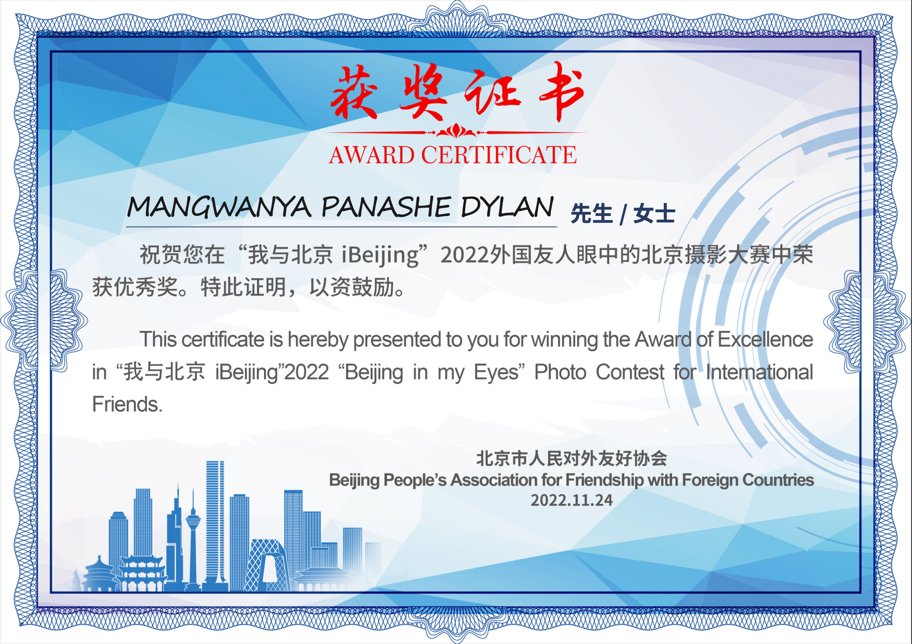 公司有十余名职工参加本次摄影大赛,其中津巴布韦籍职工MANGWANYA PANASHE DYLAN的作品从来自五大洲42个国家的近1500篇外籍友人投稿作品中脱颖而出,获得优秀奖。