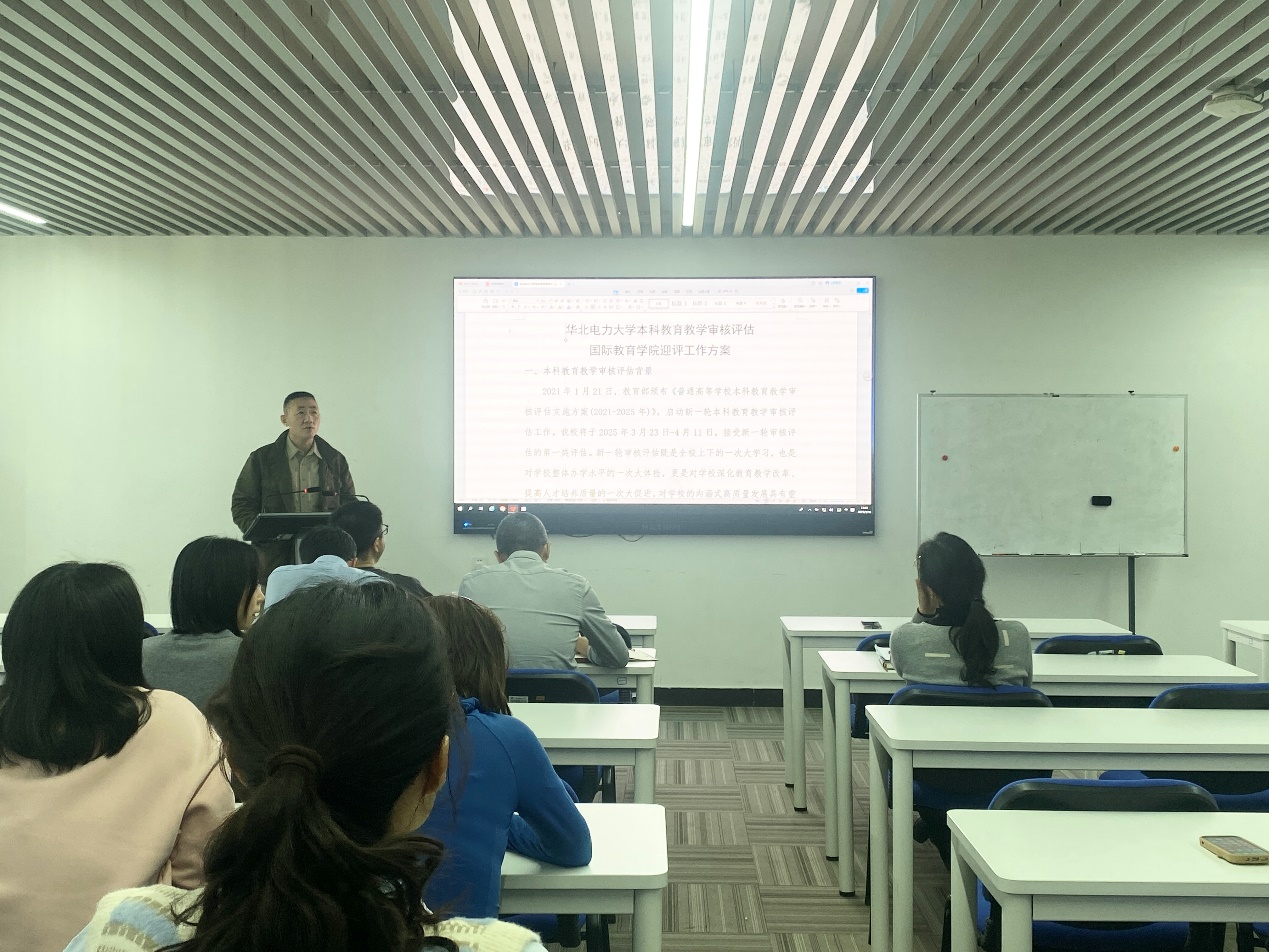 副经理魏军强介绍了公司迎接本科公司产品审核评估工作的进展情况,并特别强调了对教师课堂教学、学风督导和线下走访考察等方面的具体要求。