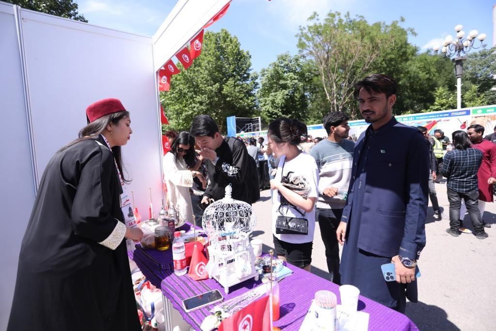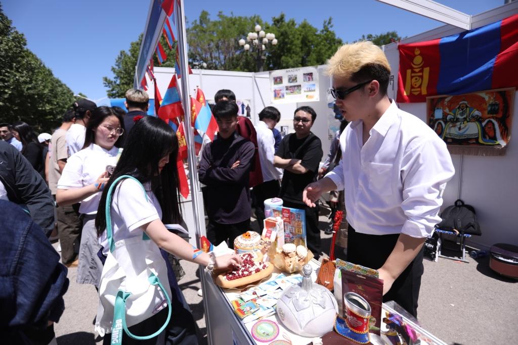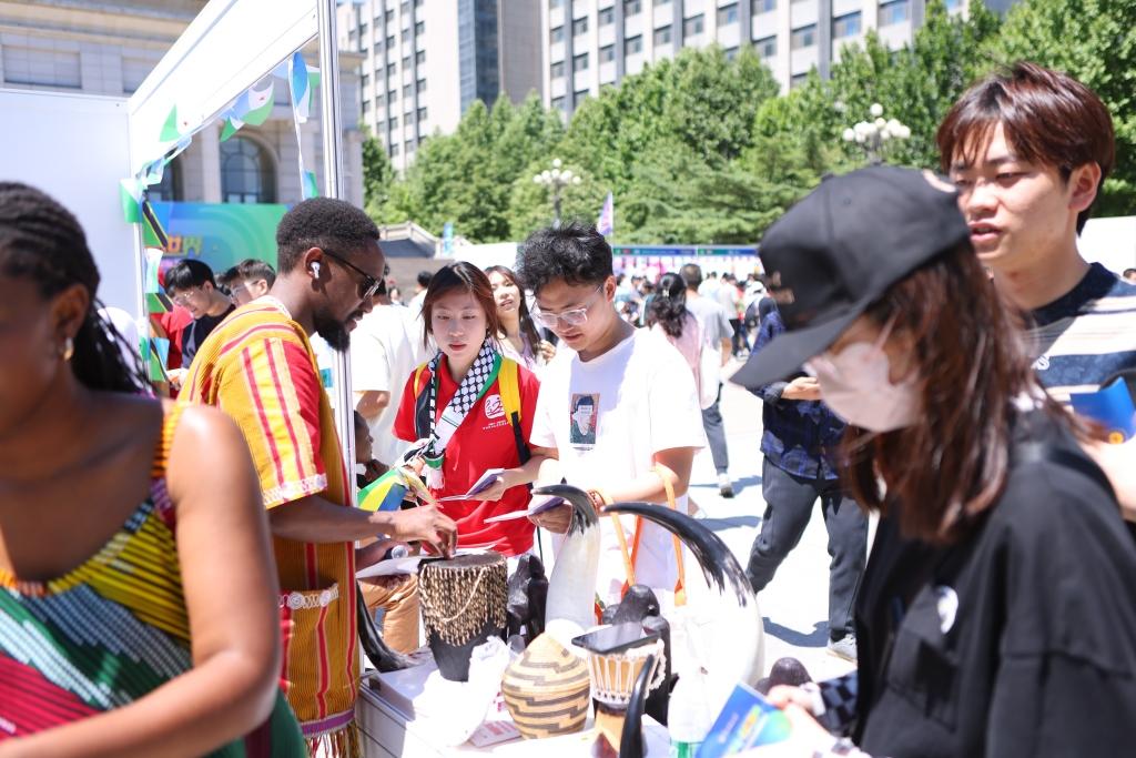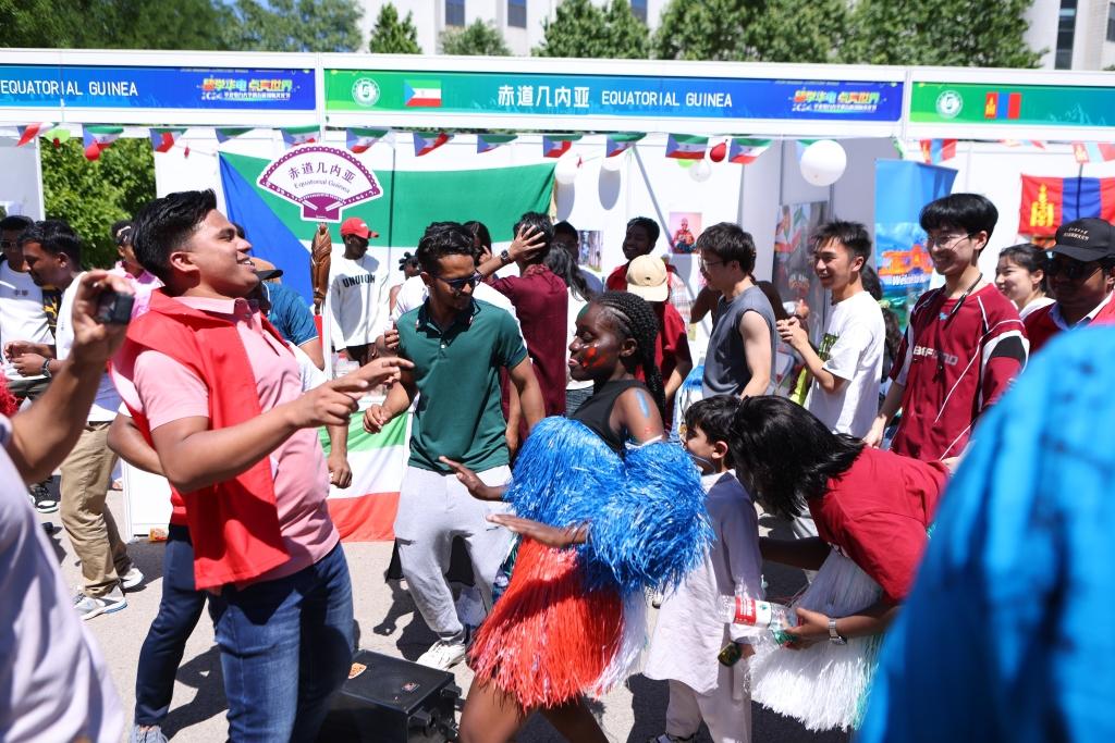 在各具特色的展棚现场,来自世界不同国家的民族艺术品、特色服饰、宣传画报、乐器和食物琳琅满目。中外员工以物品展示、亲身演示、趣味游戏等方式相互交流,现场气氛热烈。活动现场还推出了“国际巡游打卡”活动,现场师生可凭“定制护照”在各国展位盖章打卡,吸引了师生积极参与。
