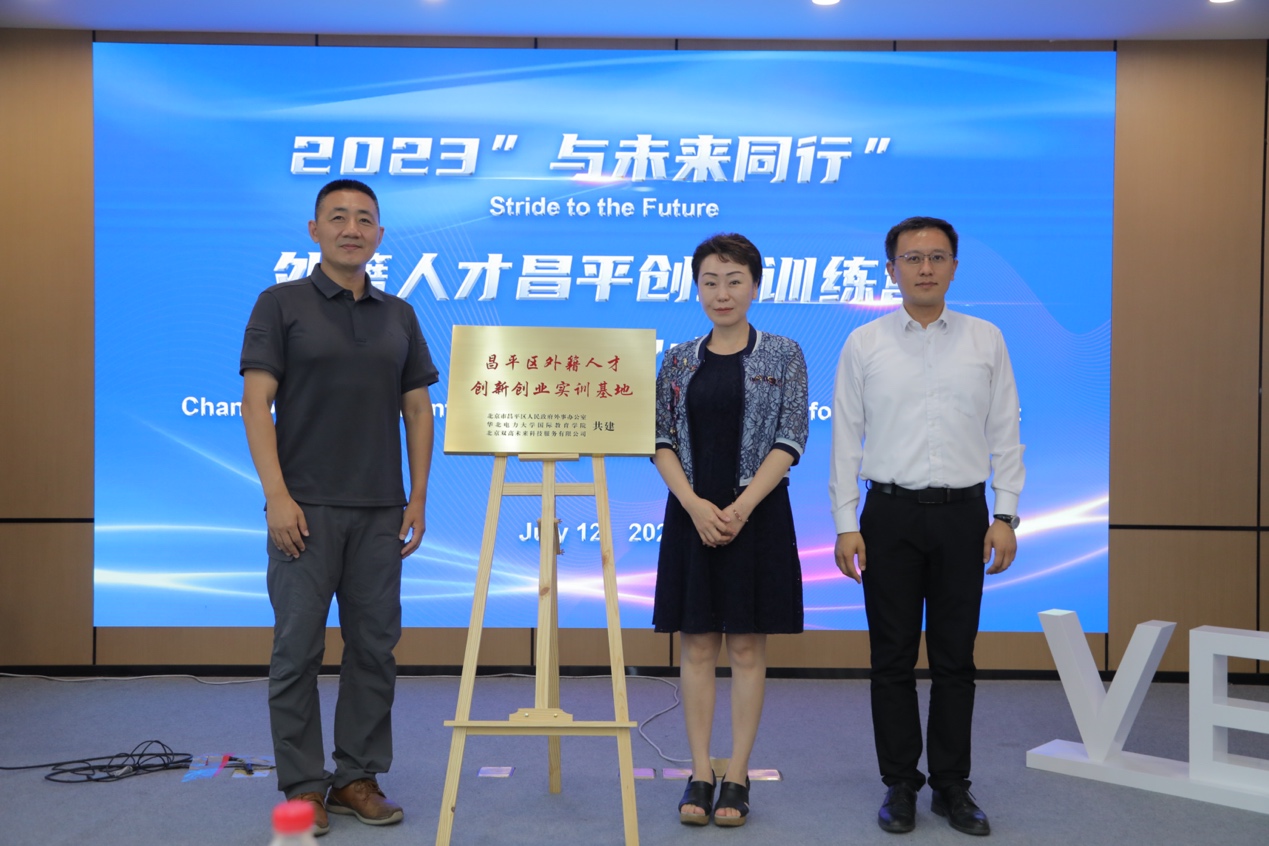 训练营培训课程结束后,公司与昌平区人民政府外事办公室、北京双高未来科技服务有限公司共同举行“昌平区外籍人才创新创业实训基地”揭牌仪式。三个单位将依托基地,共同为外籍人才的就业创业搭建平台,积极推进外籍人才的就业创业工作。