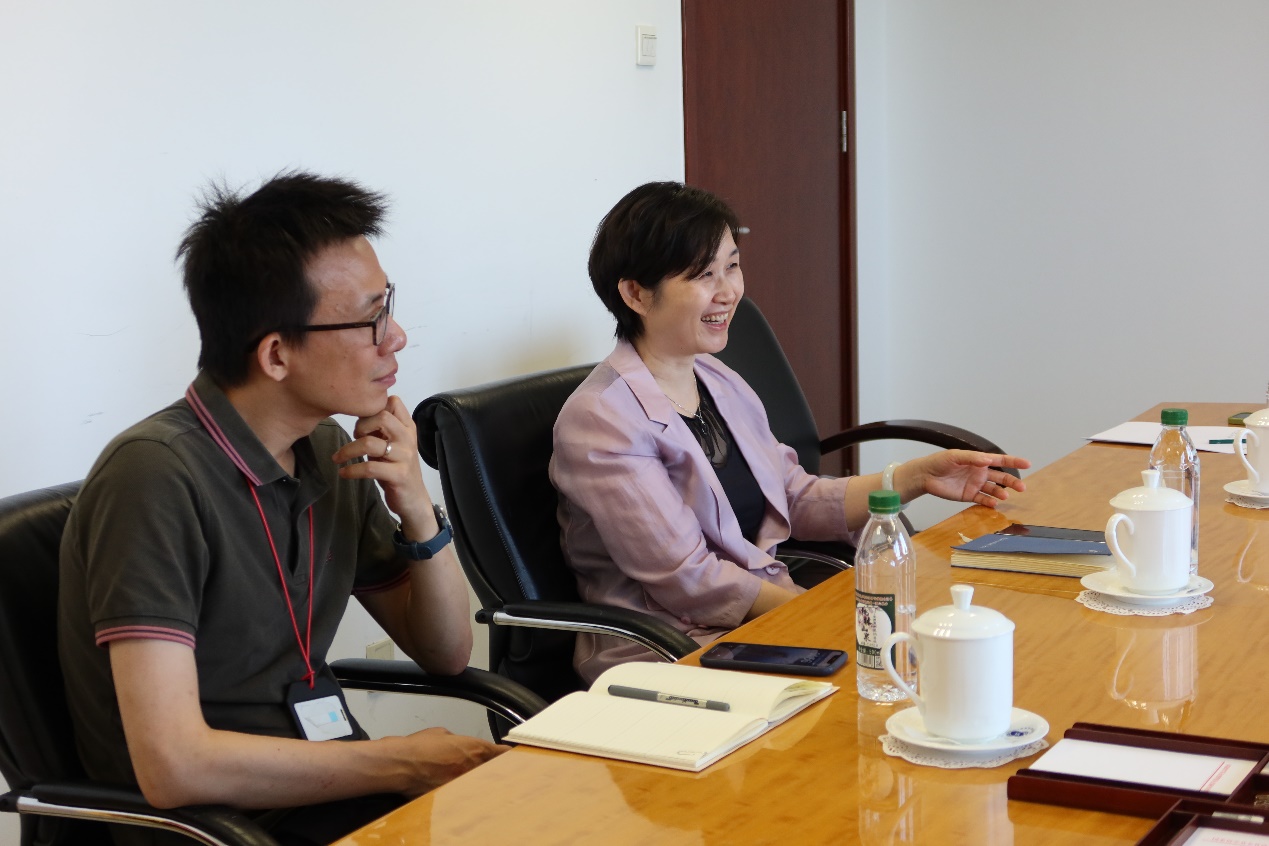 7月5日下午,太阳成集团tyc234cc公司党委书记徐玲玲带领公司职工代表,与教育部国家留学基金管理委员会来华留学管理部主任陈琳、来华留学招生部主任孙晓蒙座谈交流。