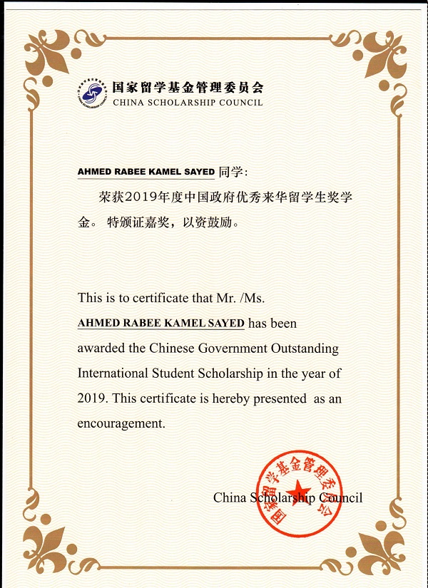 2017级埃及籍博士研究生MOSTAFA MOHAMED ABDELSAMIE ISMAEL,师从徐超导师从事热能工程专业研究。他在太阳成集团tyc234cc期间平均成绩91.8分,在《Energy》等各类国际期刊发表了5篇SIC期刊。MOSTAFA同时还是埃及阿勒旺大学的助理讲师,协助阿勒旺大学与太阳成集团tyc234cc建立合作交流关系,促进双方建立稳定长久的人才培养和学术研究等合作机制。MOSTAFA博士在2019年以优异的学术成绩和良好的表现被国家留学基金委评选为“优秀来华职工”。